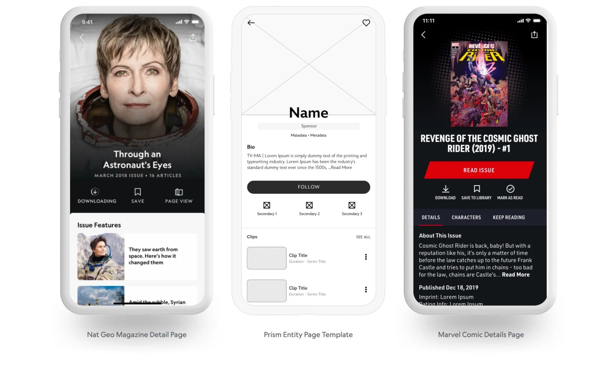 For Magazine Detail pages or what we call “Entity Pages” in Prism, we leveraged Prism’s entity page templates which informed our placement of the title, metadata, and secondary actions.