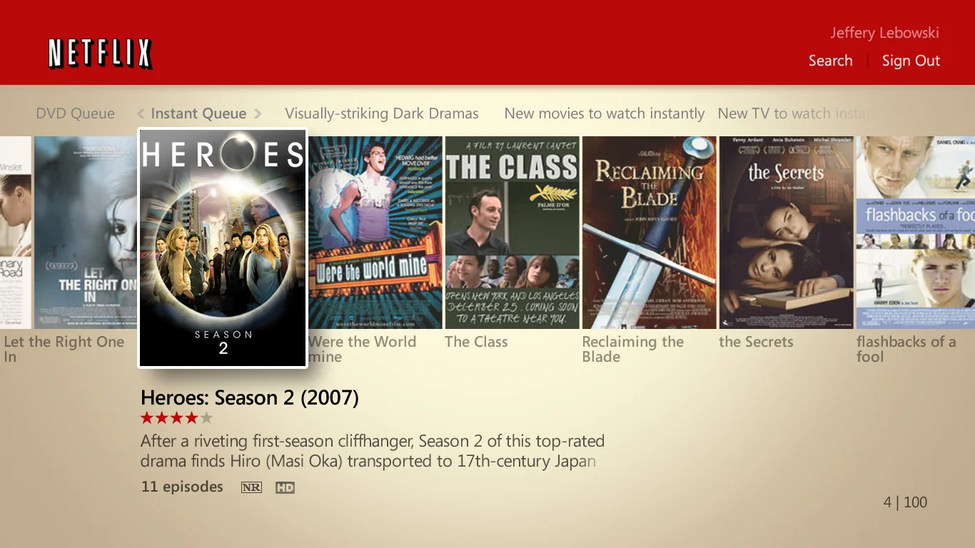 Netflix on Windows Media CenterSenior Visual Designer, Microsoft UI/UX design, art direction, production2006-2008