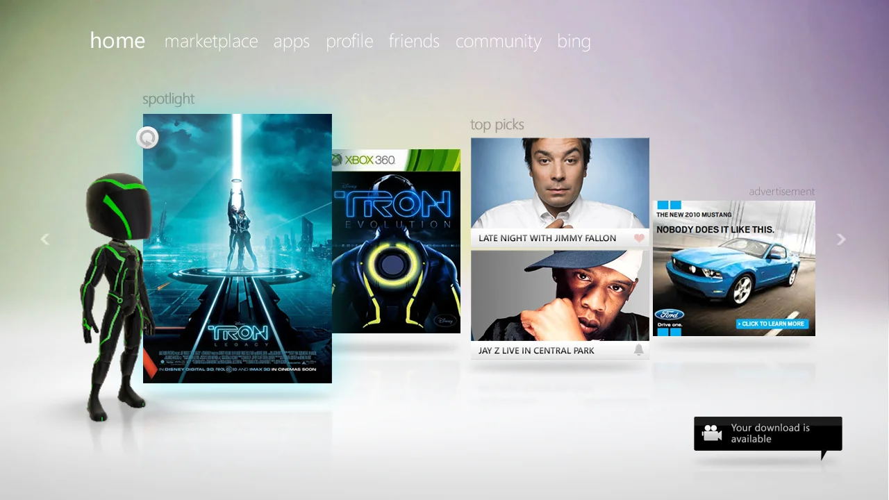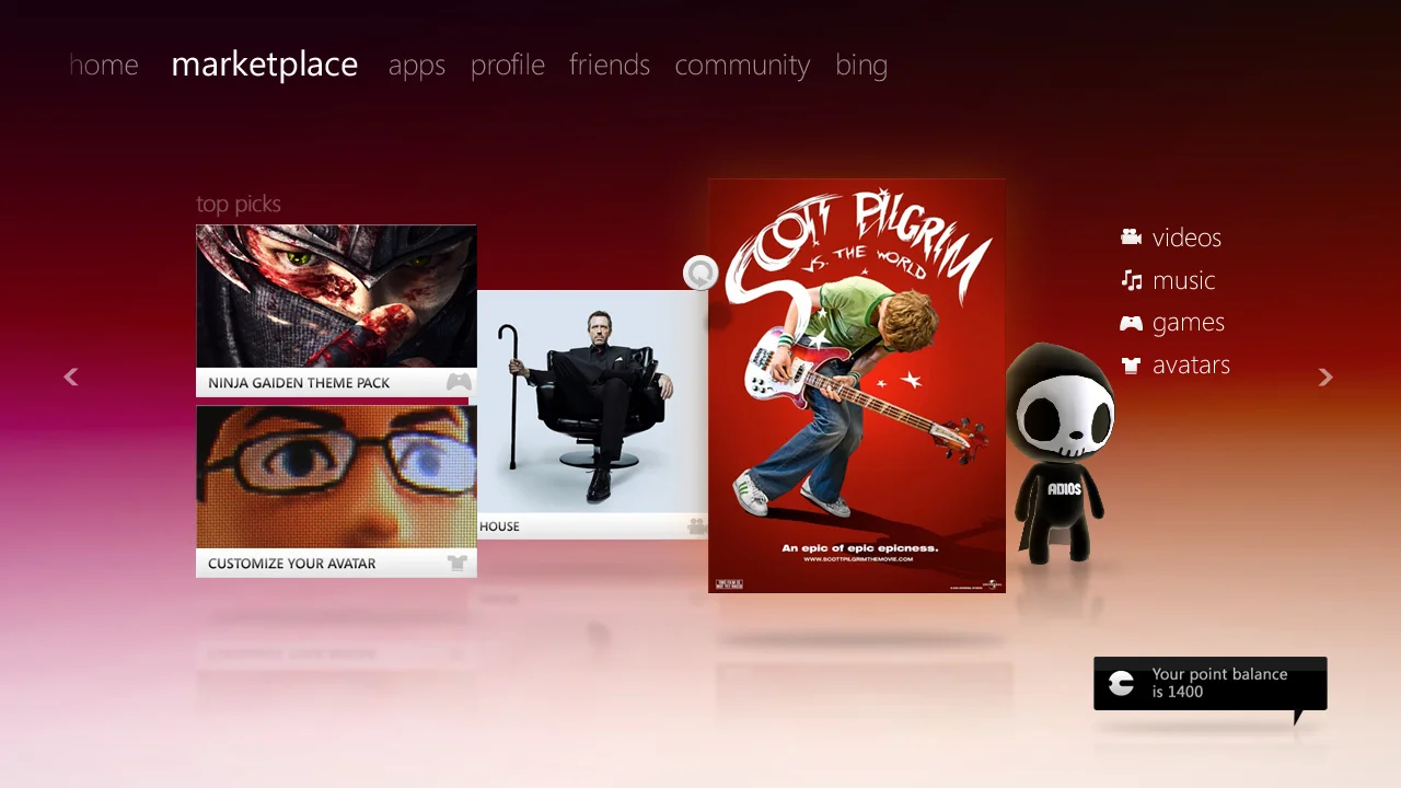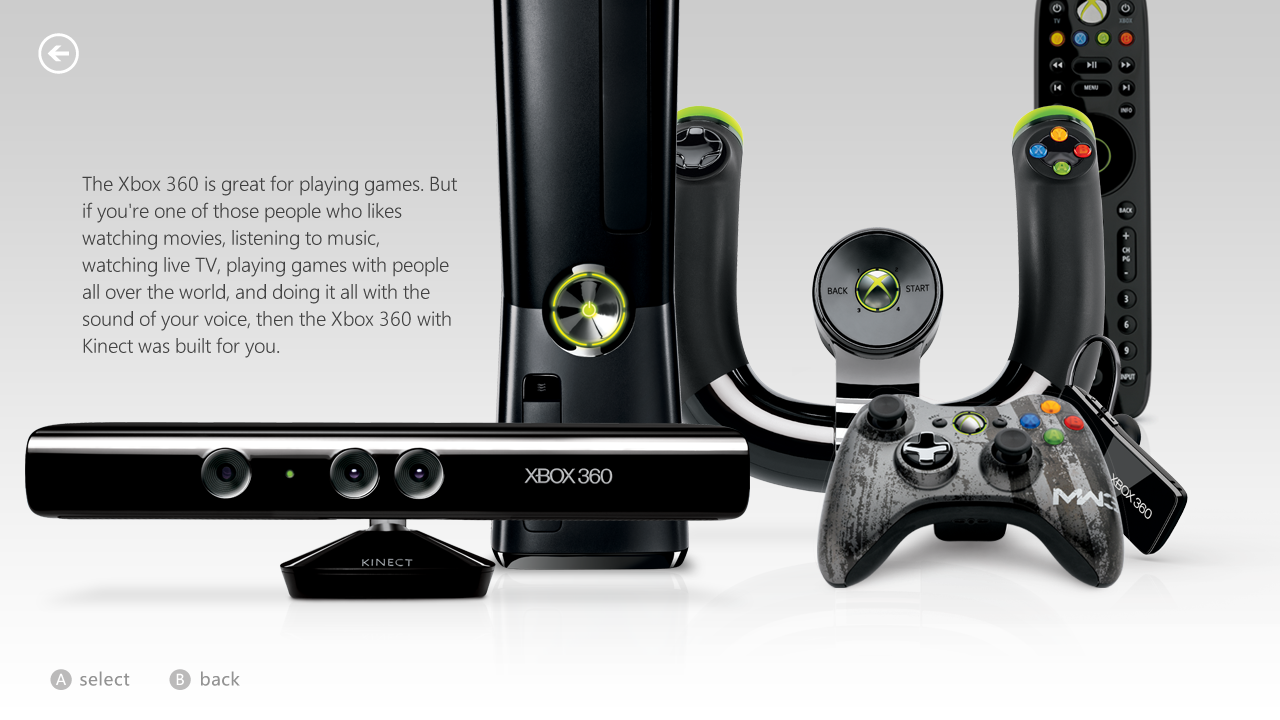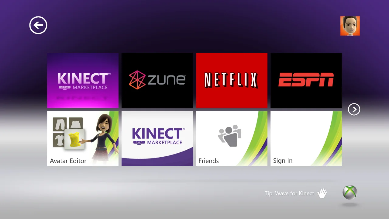 Xbox 360 was the first gaming platform to allow users to interact with a natural user interface (NUI) through Kinect. The combination of NUI and new media features made Xbox 360 the entertainment system to watch. Over the course of the next three release of the Xbox 360 from 2008 to 2011 the dashbaord was refined further to put gaming and entertainment at the center of the expereince.